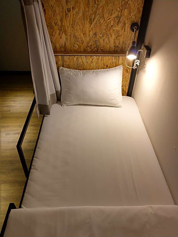 This bed in dormitory features a soundproofing, seating area and air conditioning.